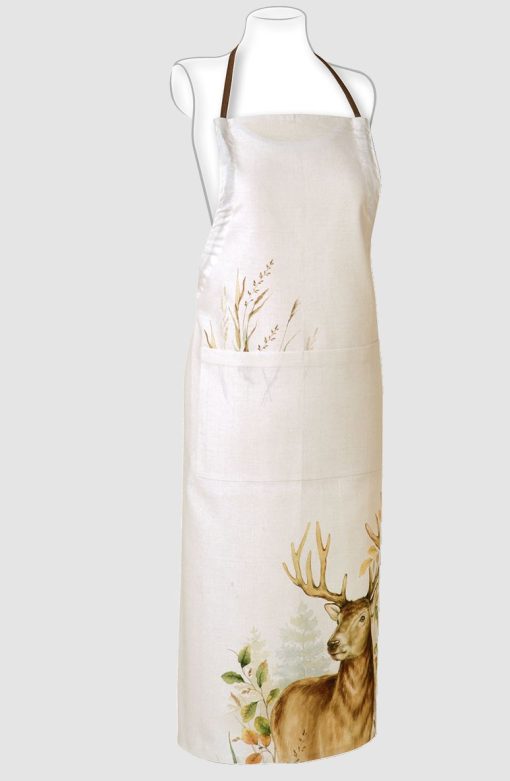 Forklæde med kronhjort i 100 % bomuld og som bindes på ryggen. (nkoutdoor.dk)